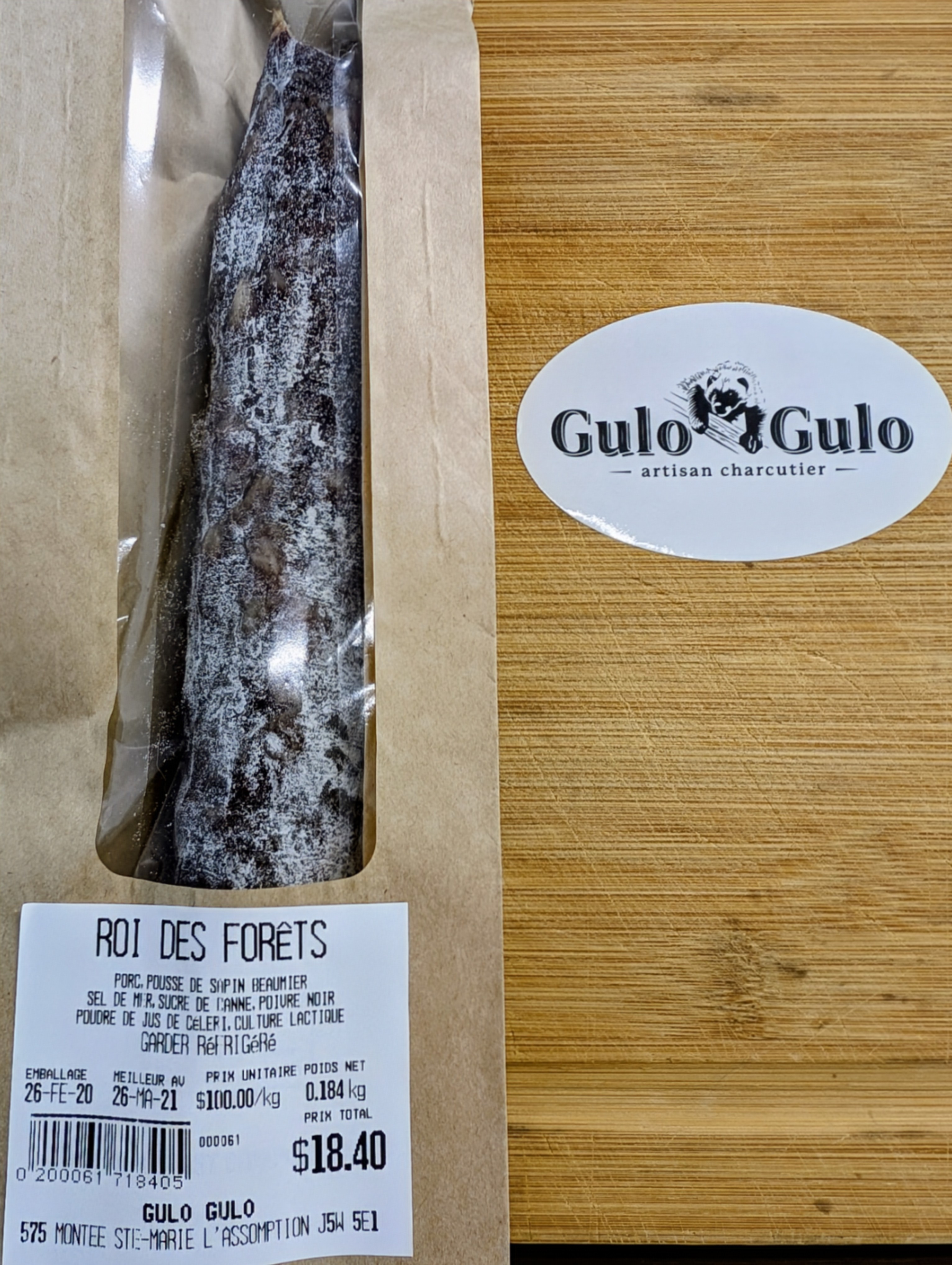 Gulo Saucisson sec ”Roi des forets” entre 14$ et 20$ le prix sera ajouter à votre facture