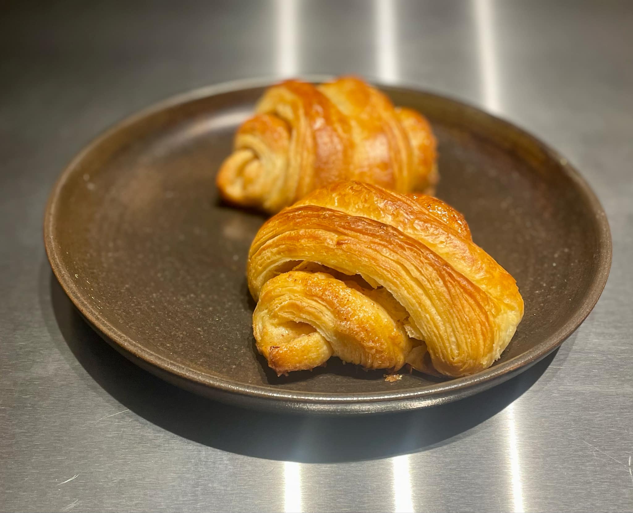 Un Morceau de Hambourg, Le mélange parfait entre un croissant et un roulé à la cannelle. Pâte levée feuilletée au beurre, sucrée au miel et garnie d'une farce caramelisée à la cannelle.